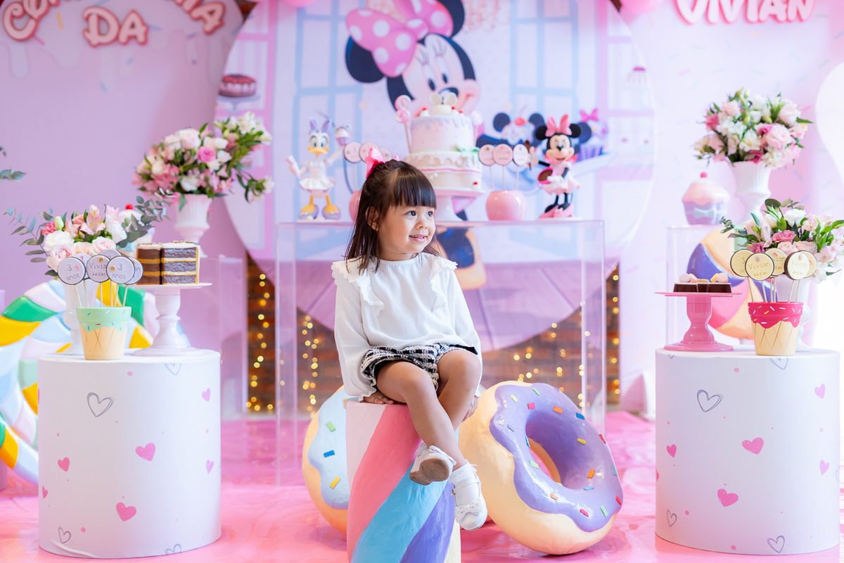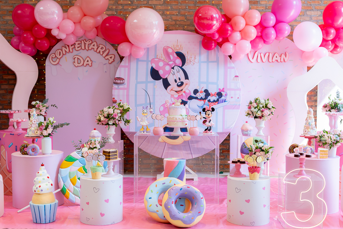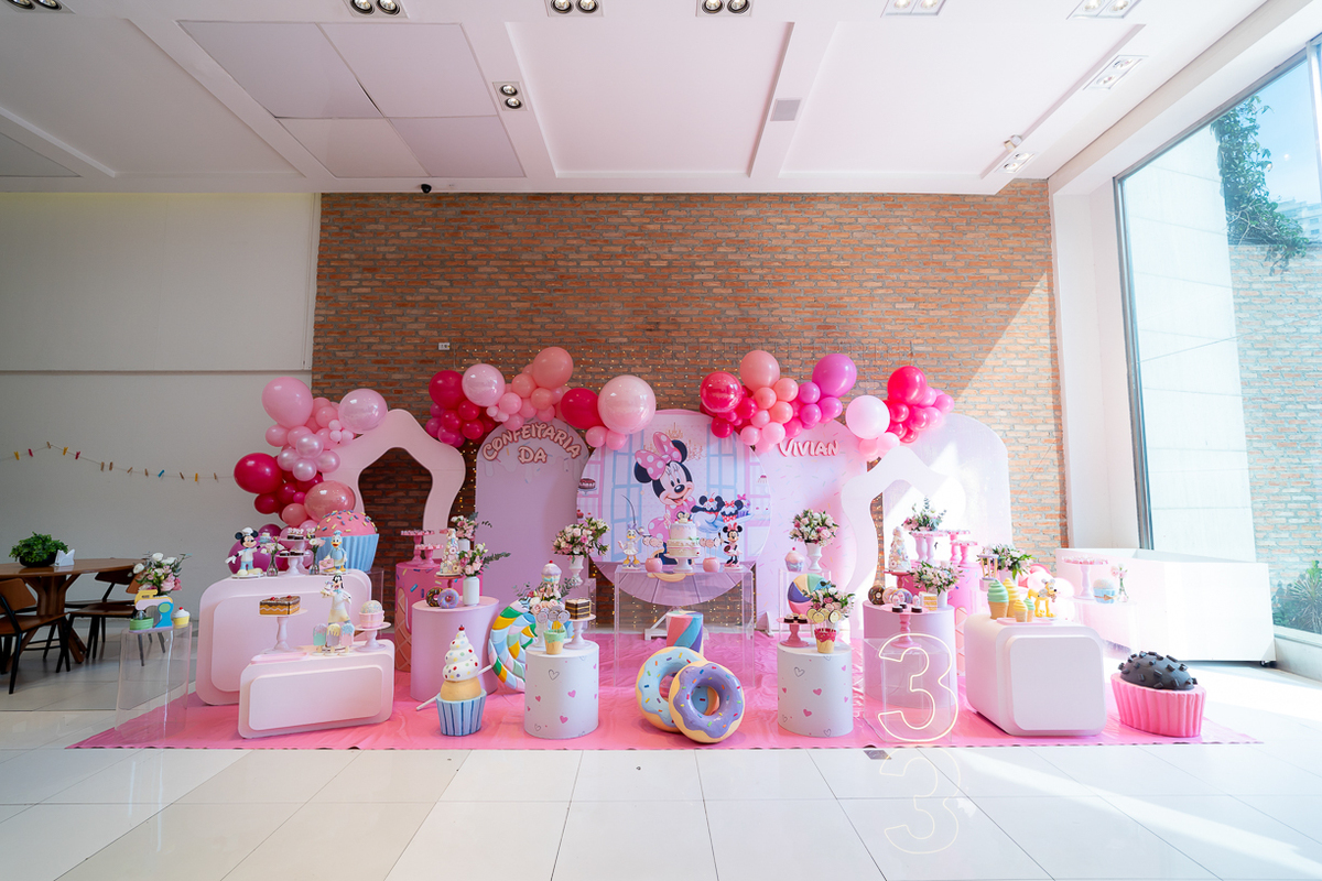 Celebrando o aniversário da Vivian no Buffet Spazio Reale em sua unidade 2 em Moema com o tema Confeitaria da Minnie! 🎉🍰