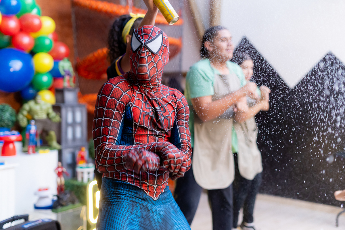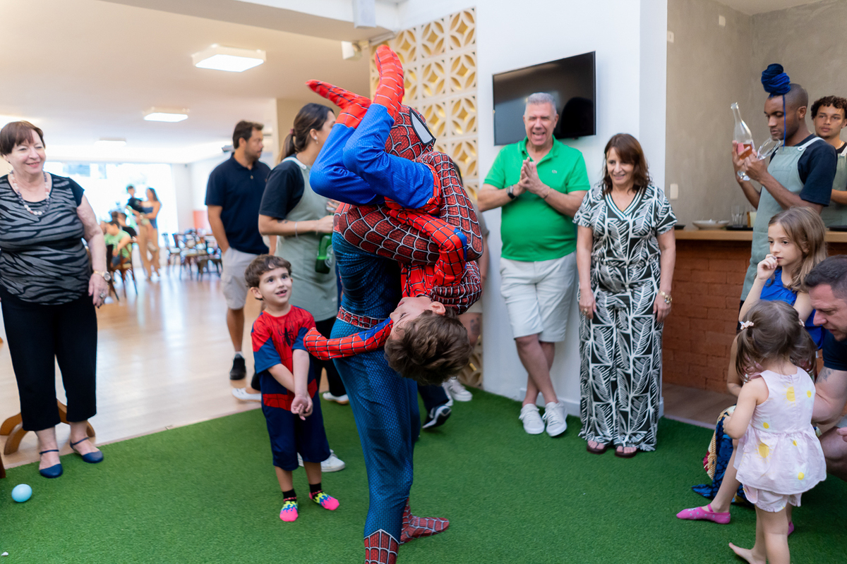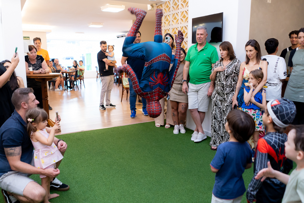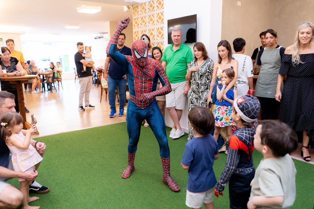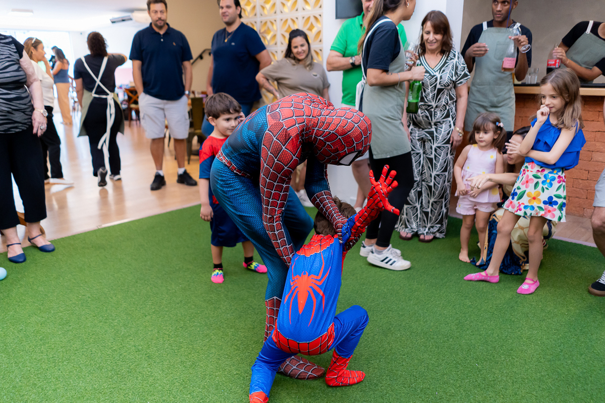 Com o tema de Homem-Aranha, a diversão foi garantida do início ao fim. E ainda teve a presença especial do próprio Homem-Aranha, que deu um show com suas incríveis cambalhotas e mortais, encantou a todos os presentes, especialmente as crianças que vibraram com cada acrobacia.