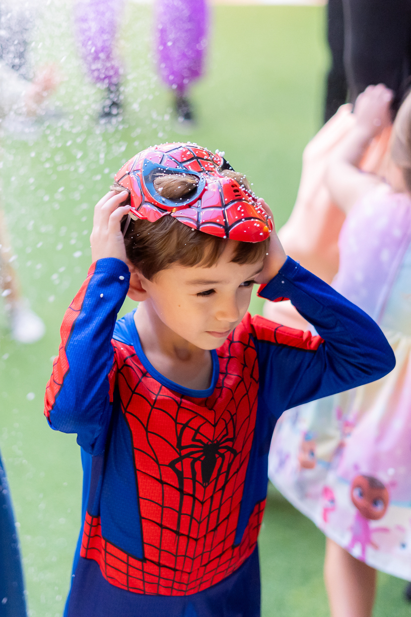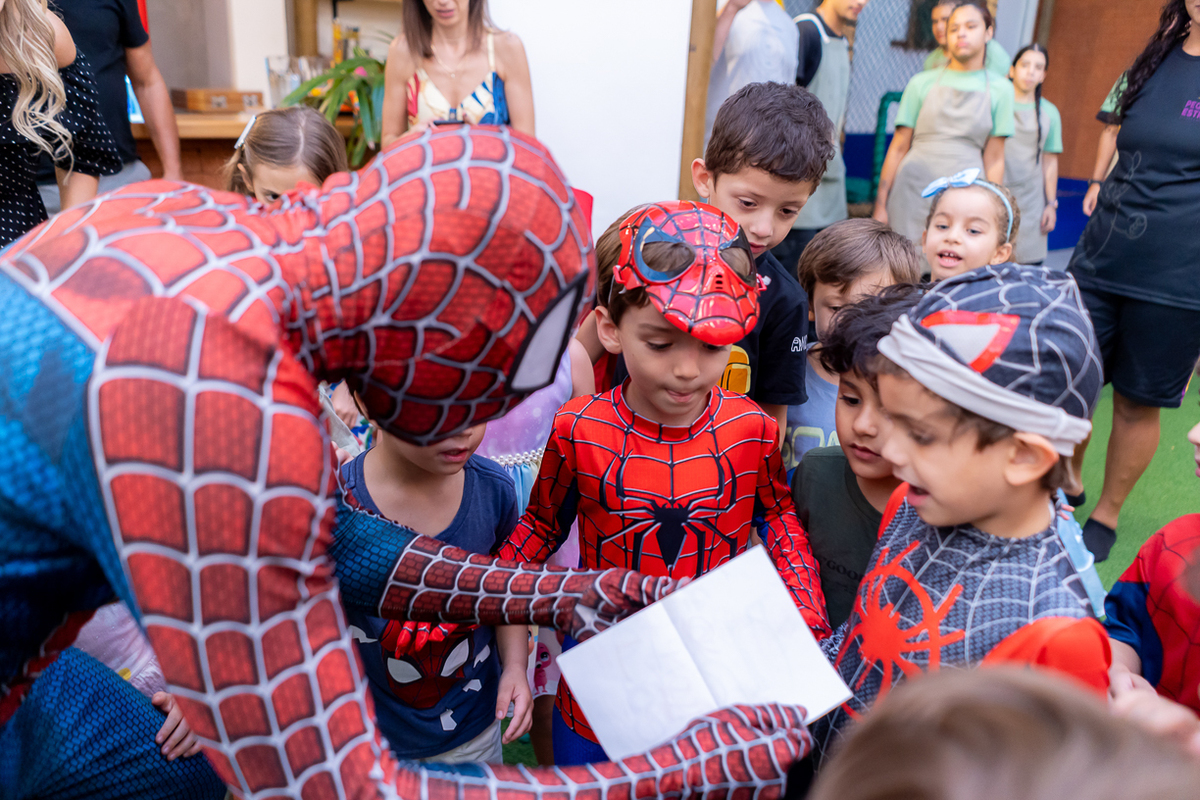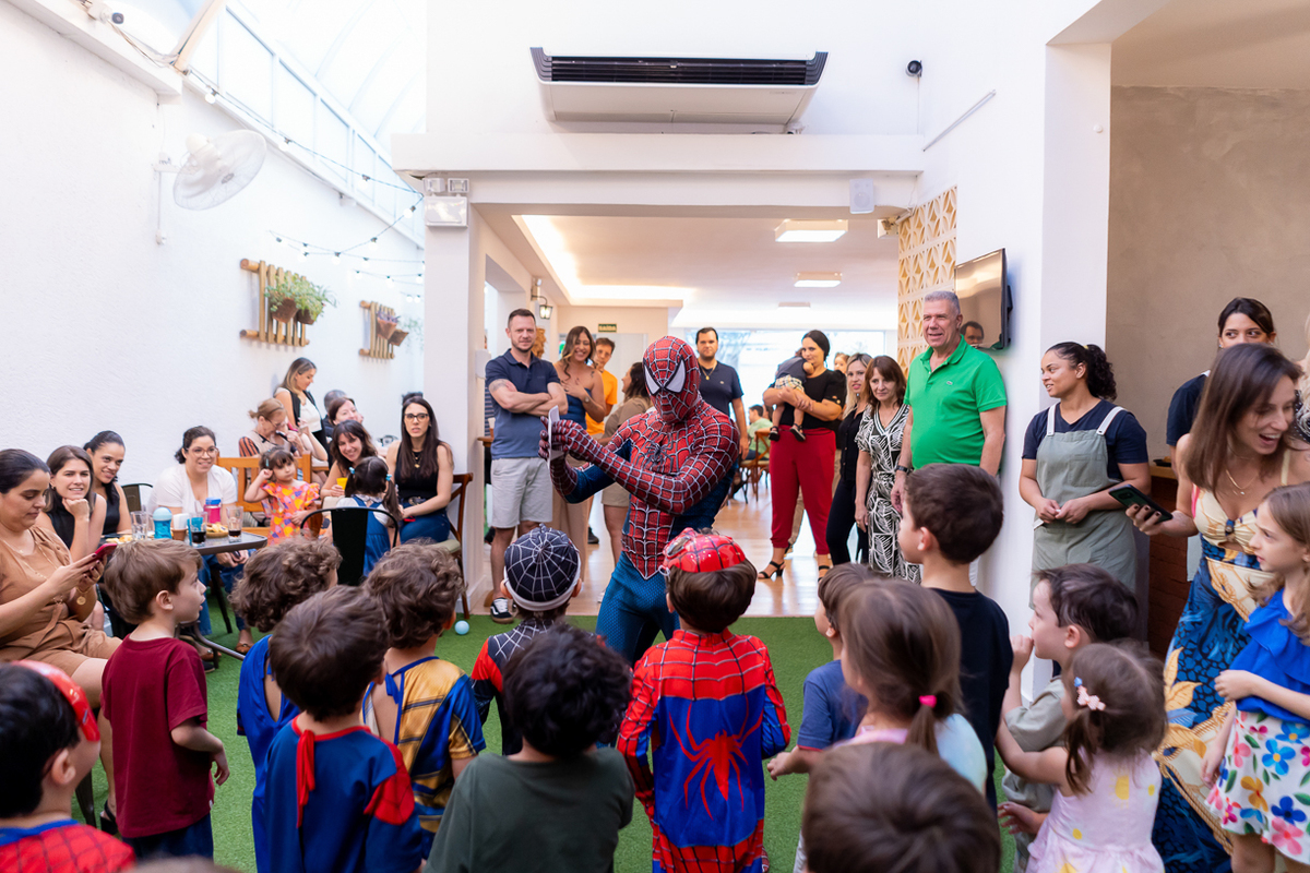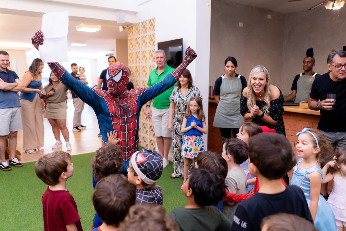 Com o tema de Homem-Aranha, a diversão foi garantida do início ao fim. E ainda teve a presença especial do próprio Homem-Aranha, que deu um show com suas incríveis cambalhotas e mortais, encantou a todos os presentes, especialmente as crianças que vibraram com cada acrobacia.